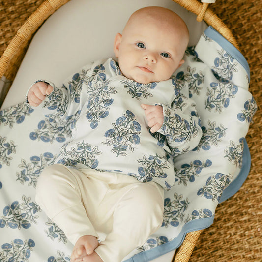 Pink Chicken-Nesting Box - Blue Bouquet Floral Block Print