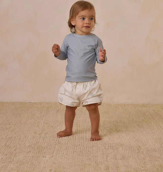 These soft boardshorts feature an elastic waistband and drawstrings at the front.