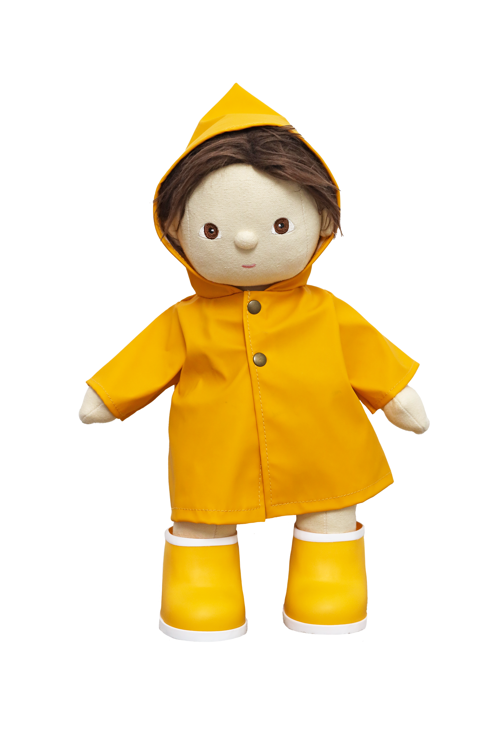 With its Dinkum sized rain hood and mini rainboots in a playful yellow colorway, the Rainy Play set is FUN, waterproof (yay for that!) and perfect for wet weather adventures!!