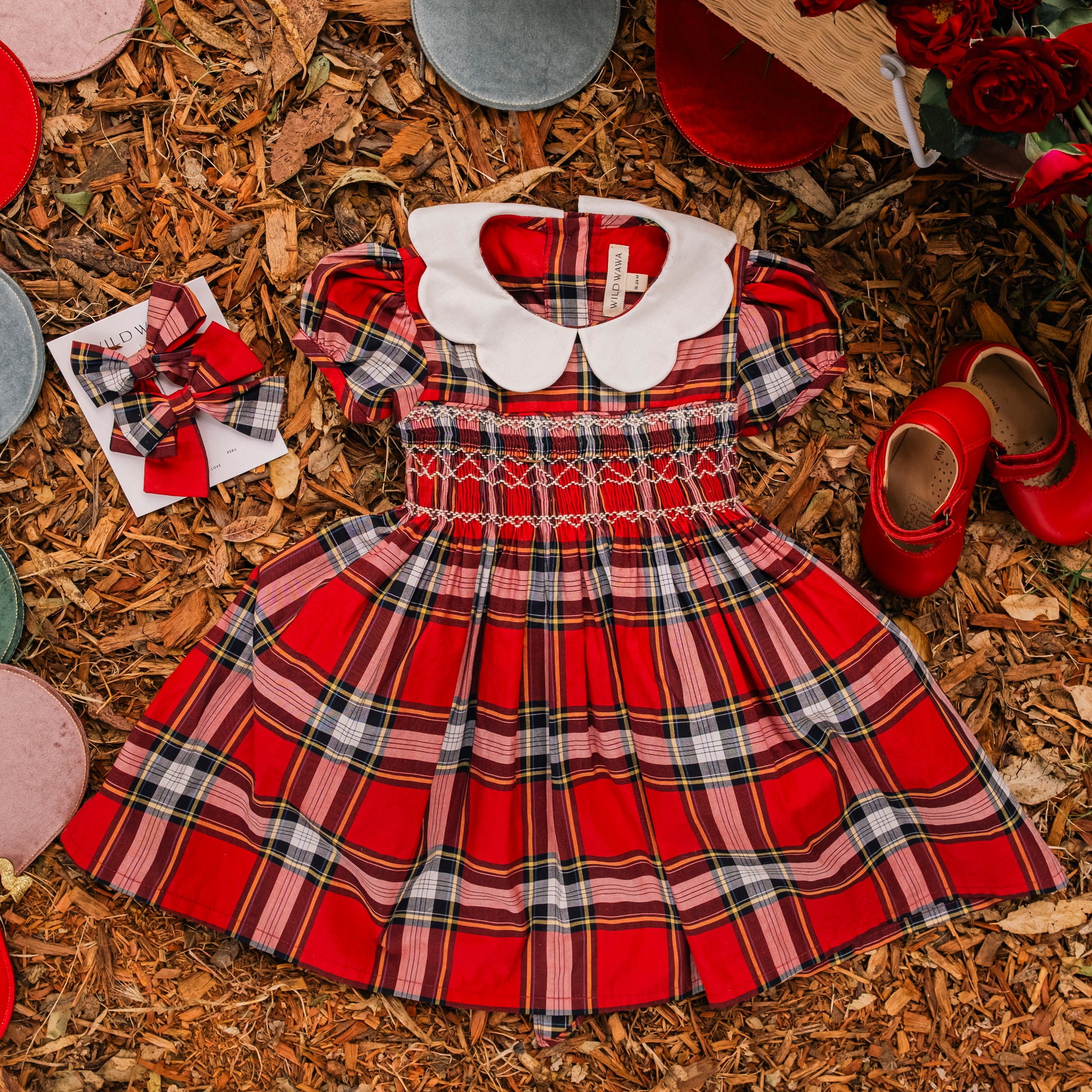 Heritage magic in the sweetest details ✨ Our clip set features classic Scottish-inspired tartan in rich red plaid—the perfect finishing touch to complete any holiday look.